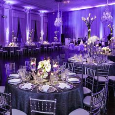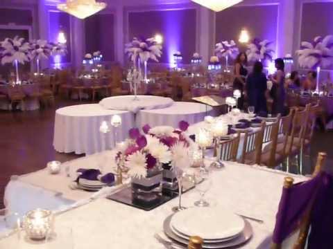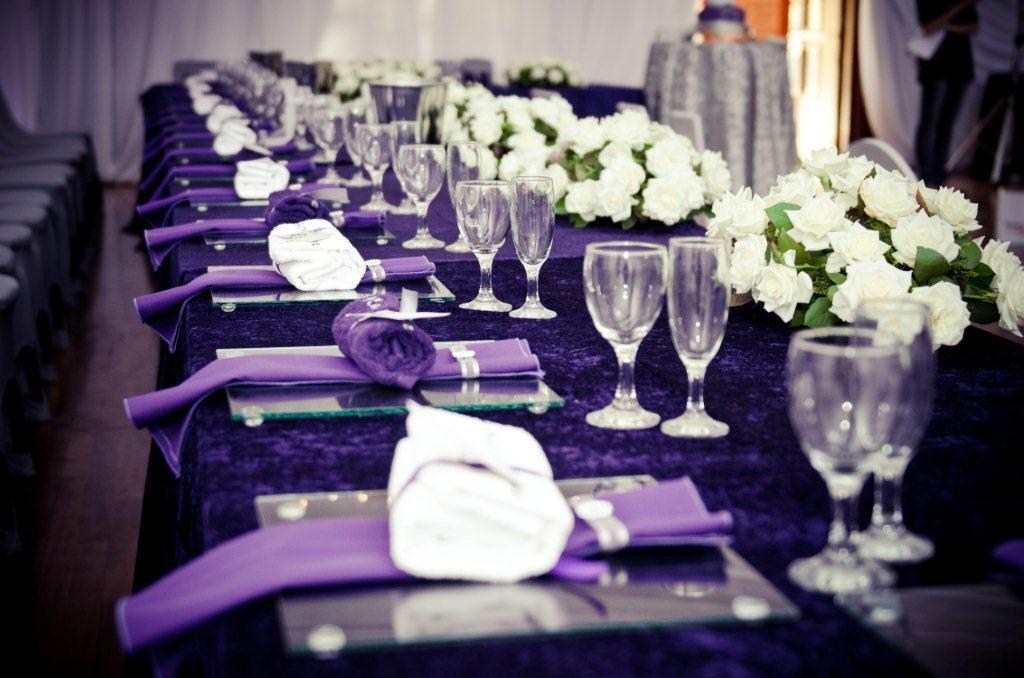 De første eksempler på dekoration, pynt og uplights til brylluppet tager udgangspunkt i et lilla farvetema og fungerer utroligt godt.